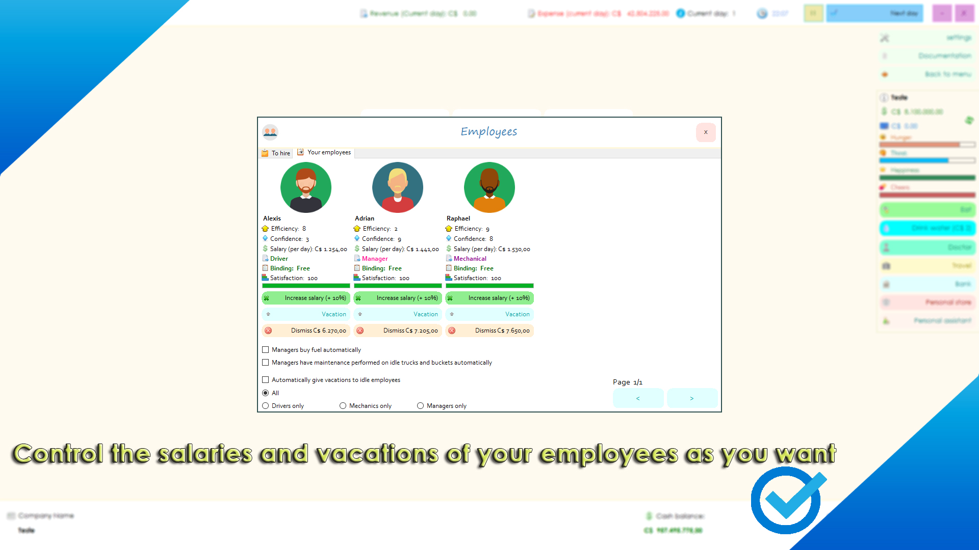- Hire and control your employees and have the best people at your side to help the company grow.
